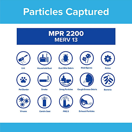 About this item- Optimal Filtration: Features a 2200 MPR and MERV 13 rating, capturing 69% of small particles and up to 78% of airborne virus particles.