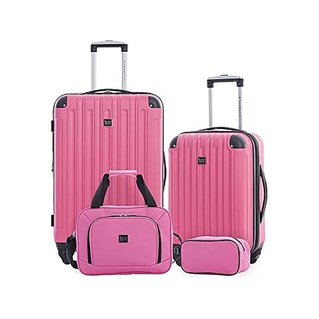 $49.99*:Travelers Club Midtown Hardside 4-Piece Luggage Travel Set, Bubble Gum(26" Spinner, 20" Carry-On, 15" Boarding Tote & 10" Travel Kit)