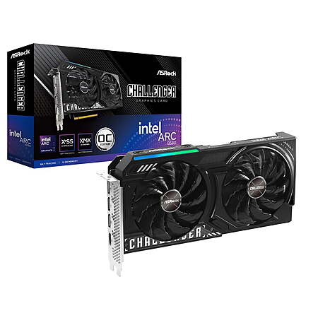 ASRock Intel ARC B580 Challenger 12GB OC GDDR6 19 Gbps 192 Bits 2740 MHz 650W 7680 x 4320 Dual Fan Graphics Card 12GB 192-Bit GDDR6 Core Clock 2740 MHz 1 x HDMI 2.1 3 x DisplayPort 2.1 with DSC PCI Express 4.0 x8