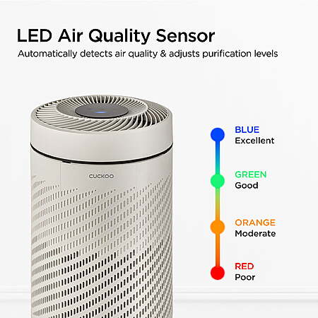 | Product Description: | Immerse Yourself in Fresh, Clean Air With CUCKOO's CAC-AB0610FI H13 True HEPA Air Purifier! Healthier, cleaner air is at your fingertips with CUCKOO's CAC-AB0610FI H13 True HEPA Air Purifier! The UV-C light filters 99.97% of fine odors, smoke, dust, and pet dander, with smart technology modes and a sleek design perfect for your living space. Key Features: 2-Stage Filtration: Goes through a pre-filter to detect larger contaminants like pet dander and dust, and then a true H13 HEPA filter for smaller dust particles. For Living Rooms, Bedrooms, & More: Perfect for mid-sized to large spaces, this air purifier is ideal for living rooms, bedrooms, kids' rooms, and kitchens up to 1,108 sq. ft. (1 ACH). Adjustable Fan Control: Between manual fan speeds or intuitive preset modes, such as Auto+ to automatically adjust fan speed and power off according to the current air quality, enjoy a completely customized purification experience. Sleep Mode: Ensures a restful night by reducing fan speed and dimming the lights, creating a calm and quiet ambiance. Smart Replacement Indicator: Automatically alerts exactly when your air purifier needs a filter replacement - every 4-12 months with regular use. Indulge in clean and healthy air with CUCKOO's CAC-AB0610FI H13 True HEPA Air Purifier! Smart Dust Sensor: Detects the pollution status of the air indoor in real time and adjusts fan speed accordingly For Medium to Large Sized Spaces: Ideal for home offices, small bedrooms, and kids' rooms, covering up to 1,108 square feet 4 Color LED Display: Detects cleanliness of indoor air through the dust sensor and displays on screen Sleep Mode: Enjoy a good night’s rest as sleep mode is designed slow down the fan speed and dim the lights for a calm and quiet ambiance Included Accessories: Comes with 1 True HEPA H13 filter and product manual |