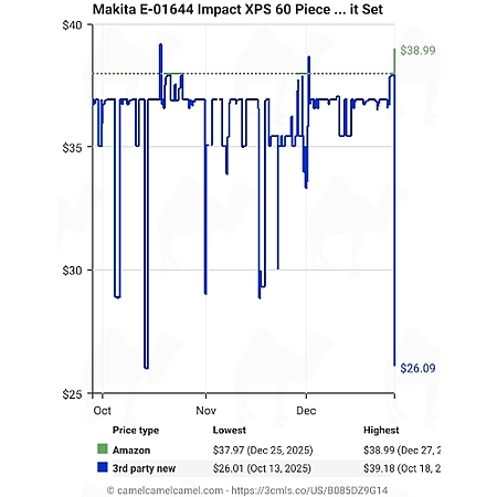 $26!! Makita E-01644 Impact XPS 60 Piece Impact Bit Set