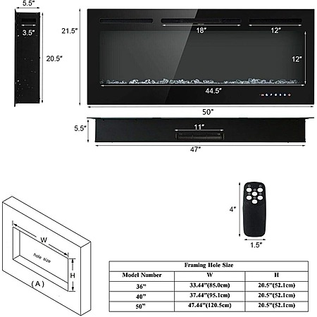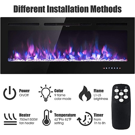 Model: Tangkula 50 inches Electric Fireplace Insert with Thermostat, in-Wall Recessed and Wall Mounted 1500 W Faux Fireplace, Touch Screen Control, 9 Flamer Color, Temperature Control & Timer (50 inches)