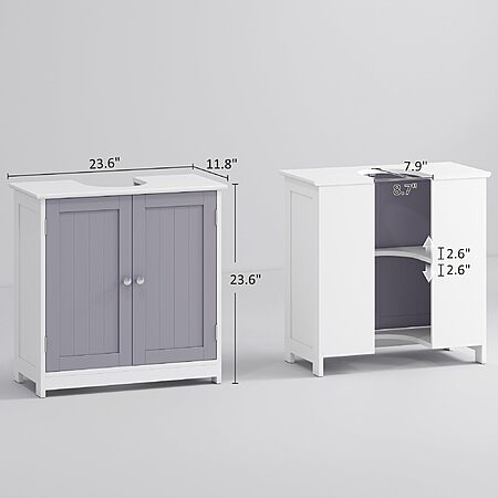 Aosom Direct via amazon.com has kleankin 23.5" Pedestal Sink Storage Cabinet, Freestanding Bathroom Under Sink Cabinet with U-Shape Cut-Out and Adjustable Shelf, White and Gray on sale for $53.99. FREE delivery.