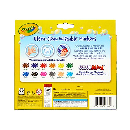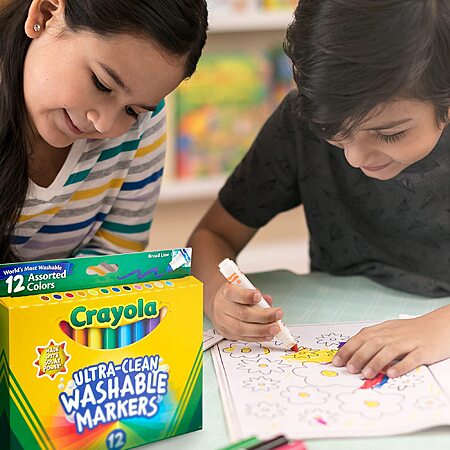 Model: Crayola Ultra Clean Washable Markers Broad Line, Multi Colored, 12 Count (Pack of 1)