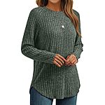 AUTOMET Womens Long Sleeve Shirts Fall Fashion Tops 2025 Crewneck Dressy Sweaters Tunic Winter Clothes Casual Outfits Green M $6.99