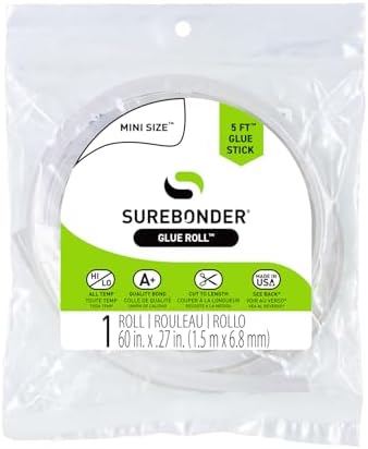Model: Surebonder Mini Hot Glue Stick Roll, 60" (5 Feet), 5/16" Diameter - Long Glue Stick, Uninterrupted Gluing, All Purpose for Crafting and DIY, Clear