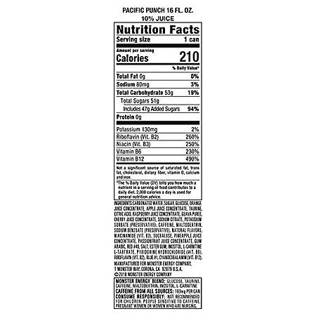 Model: Monster Energy Juice Monster Pacific Punch, Energy + Juice, Energy Drink, 16 Ounce (Pack of 15)