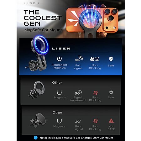 LISEN MagSafe Phone Car Vent Mount (Black) $6.99 + Free Shipping w/ Prime or on $35+