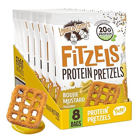 [S&S, AC] $7.67: 8-Pack 3-Oz Lenny & Larry's FITZELS Protein Pretzels (Boujie Mustard) at Amazon