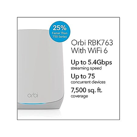 NETGEAR Orbi RBK763-100NAR AX5400 Tri-band WiFi 6 Mesh System $152.99