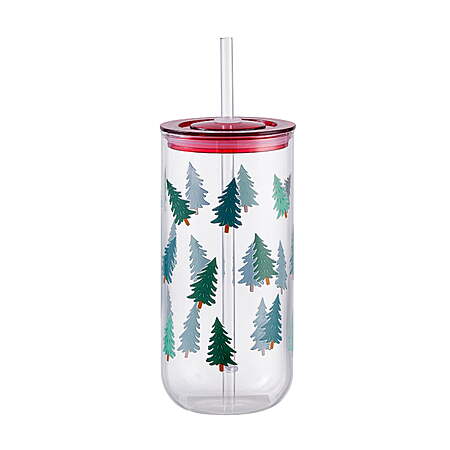 Christmas Trees Can Sipper Glass with Lid 20 OZ Holiday Time $1.98