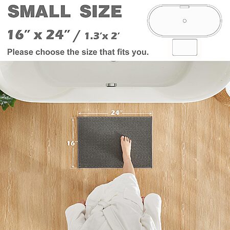 Model: TYUU Bathroom Rugs Non Slip Washable, Super Absorbent Thin Bath Mat Small Quick Dry Low Pile Bathroom Rug, Dark Grey 16"x24"