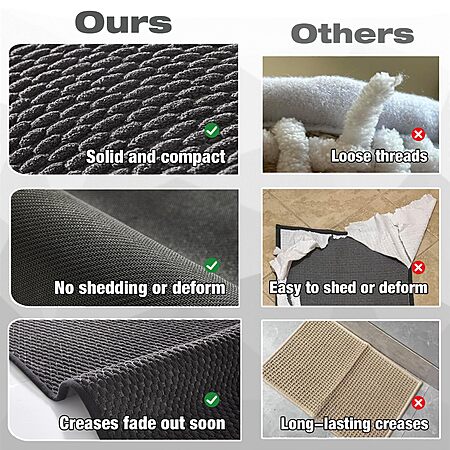 • Super Absorbent and Quick Dry: Our bath rug is super absorbent. When you step out of the bathtub or shower, it quickly soaks up the dripping water from your feet. And our fabric technique allows the rug to dry fast in the open air, bring you a dry and comfortable bathroom