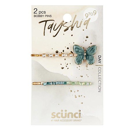 2-Count Tayshia by Scunci Pearl Butterfly, No-Slip Essential Bobby Pins, Turquoise