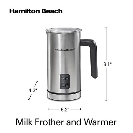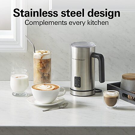 amazon.com has Hamilton Beach Electric Milk Frother & Warmer, Automatic Warm or Cold Foam, 5-10 oz., Create Café-Quality Coffee, Latte, Cappuccino, Frappe, Hot Chocolate, 4 Settings, Stainless Steel (43565C) on sale for $31.48. Shipping is free with Prime or on $35+ orders.