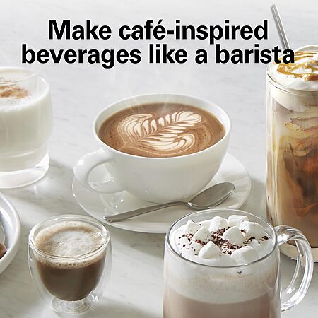 - MAKE PERFECT LATTE, CAPPUCCINO, FRAPPE, MACCHIATO, COCOA AND MORE: Create café-quality coffee drinks with 4 settings: warming and making thin foam, warming and making thick foam, making cold foam or simply warming.