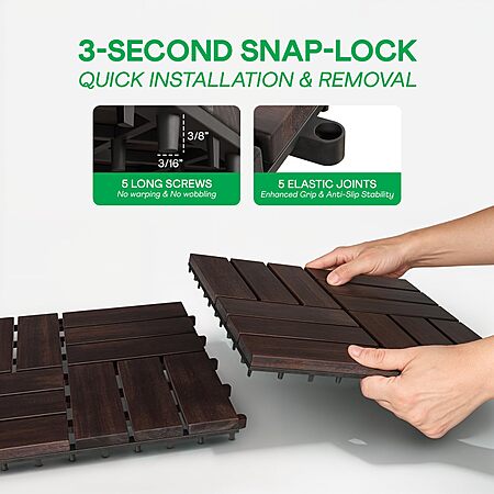 $23.21*:Idzo Interlocking Acacia Deck Tiles, 10PCS, 9.6 SQFT, Dark Brown