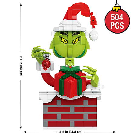 | Product Description: | Embrace the festive spirit with the Brickcraft Up The Chimney Grinch Building Kit! Step into Dr. Seuss’s enchanting world as you assemble this set, showcasing the Grinch as he cheekily pops out of a brick chimney. Featuring the Grinch’s signature sly grin, Santa hat, and a stolen present, this building kit is perfect for everyone—whether you’re an experienced builder or just starting out. Build it, display it, and let the Grinch’s holiday antics bring a smile to your face. Set it up on your mantel or use it as a fun centerpiece, adding a touch of Grinchy mischief to any space. Compatible with other leading brick brands. Up The Chimney Grinch is part of the Brickcraft “Merry Grinchmas” holiday collection, a series of The Grinch festive building kits. This collectible display model measures 9.1 in. (23 cm) high and 5.2 in. (13.2 cm) wide, and contains 504 pieces. Brickcraft Up The Chimney Grinch, 504 Piece: See the Grinch in action as he mischievously pops out of a brick chimney, clutching a large gift and a charming Christmas trinket Movable right arm, poseable Santa hat, plus flexible hands and fingers holding a stolen gift in the Grinch’s left hand Printed parts capture the Grinch’s mischievous yellow eyes, bringing his character to life 504 brick and pieces combine with all other Brickcraft building sets and are compatible with other leading brick building brands User-friendly instructions ensure a delightful building experience for both new and seasoned builders Gather your loved ones and have a delightful time piecing together the interesting details of this festive building kit Great addition to your Brickcraft Grinch collection, including the Brickcraft Grinch Fireplace Scene, Grinch Wreath, and Grinch, Max, and Cindy-Lou decorations (sold separately) |