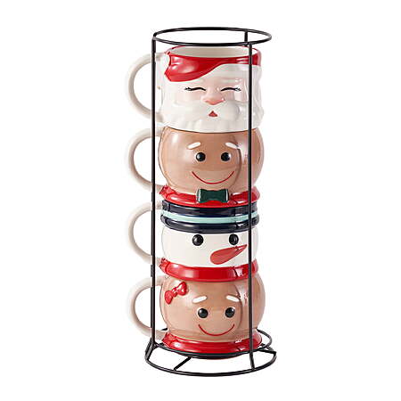 4-Piece Holiday Time Stacking Ceramic Mugs w/ Stand (3 Styles) $6.23 + Free S&H w/ Walmart+ or on $35+