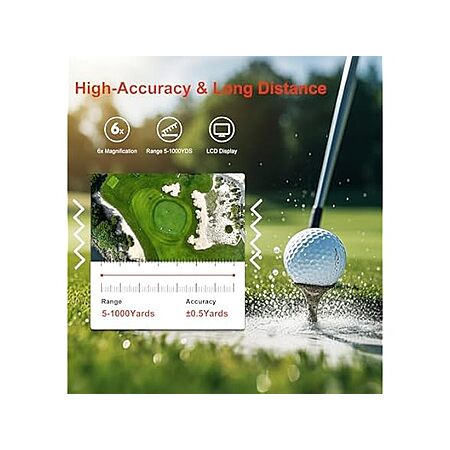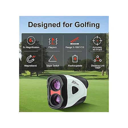 $43*:[Woot! App Only]Golf Rangefinder with Slope & Pin Lock Vibration, 1000YD Golf Range Finder, 6X Magnification & HD LCD , Rechargeable, with Magnetic Stripe,Laser Range Finder