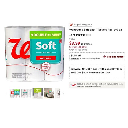 For those in areas that don't sell the mega rolls discussed in another post, these are the smallest sizes that the perpetual, "use multiple times" $1.50 coupon applies to
