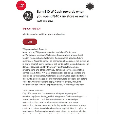 Plus if you're paying in full without applying rewards, clip the $10 in rewards* on $40+ in store or online coupon