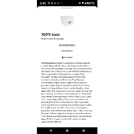 Disclaimer: Valid on purchases of storage products made in Staples® U.S. stores only. Excludes file cabinets, desk accessories and digital storage. Not valid on Instacart, DoorDash or Uber Eats orders. Limit $40 in points earned. While supplies last. Offer available to Staples Easy Rewards™ member only. To be eligible for the offer, member must activate offer in their Easy Rewards dashboard on staples.com or Staples mobile app and provide membership number at checkout. Points will be earned on the purchase amount paid at checkout after application of all promotions, coupons, instant savings and point redemptions. Taxes and shipping are not included in calculating the total purchase amount. May be used up to one time per Staples Easy Rewards member within the promotional period, nontransferable. Offer may not be combined with any other Staples Easy Rewards promotion in a single transaction. Not valid on prior purchases or purchases made with Staples Advantage In-Store Purchase Program. Offer is subject to change or cancellation at any time. Staples Easy Rewards program terms and conditions apply. For full program details visit staples.com/easy. Expires 1/3/26. 426733.