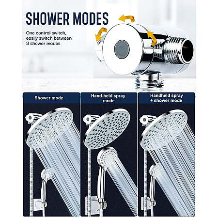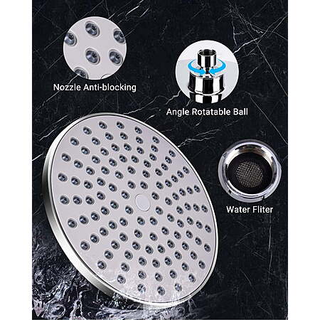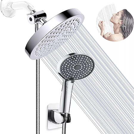 | Product Description: | High Pressure Rainfall Shower Head: 60'' Large rain shower head made from ABS and self-cleaning silicone nozzles for superior water flow coverage, comes with a reliable leak-proof connection. Its self-cleaning silicone nozzles prevent lime scale build-up, resistant to clogging, anti-oxidation and corrosion resistant. Using ultra-thin design and advanced air booster technology, offer a superior rain spray shower experience even at low water flow and pressure. 【High Pressure Rainfall Shower Head】: 60'' Large rain shower head made from 304# stainless steel and self-cleaning silicone nozzles for superior water flow coverage, comes with a reliable leak-proof connection. Its self-cleaning silicone nozzles prevent lime scale build-up, resistant to clogging, anti-oxidation and corrosion resistant. Using ultra-thin design and advanced air booster technology, offer a superior rain spray shower experience even at low water flow and pressure. 【3 Spray Modes & ON/OFF Switch】 This handheld showerheads has 3 spray settings: Power aeration mode, pulsating mode, rain mode to meet different needs; Add water saving ON/OF pause switch. It is ideal for bathing kids, washing pets and cleaning applications etc. 【High Pressure & Pinholes Design】- The shower head adopts 360 pinholes design, wide shower coverage even under low water pressure,makes the outlet holes smaller and denser then increasing the water pressure. 【Easy Installation】: No need plumbers or tools, easily installs fixed shower head with G 1/2 connection thread interface to any standard shower arm in minutes. Any defects caused during product production and delivery, please do not hesitate to contact us.(NOTE: If the shower bracket is not suitable. Because installed the hose backwards. Unscrew the hose and flip it around and the other end will fit in it.) 【Shower Head Combo】: Package includes rainfall showerhead, handheld shower head, 60''stainless steel hose, 3-way water diverter, shower bracket, teflon tape, washers, installation manual and warranty. Any defects caused during product production and delivery, please do not hesitate to contact us. |