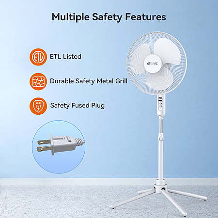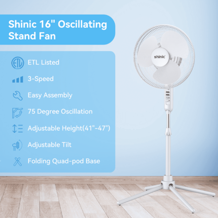 $15.77*:Shinic 16" 3-Speed Oscillating Pedestal Fan with Folding Base, Adjustable Height and Tilt,41"- 47", White