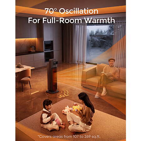 - Rapid, Whole-Room Heat: Advanced PTC ceramic technology and a 1500W high power setting provide fast, efficient warmth. The 70° wide oscillation ensures even heat distribution for larger spaces.