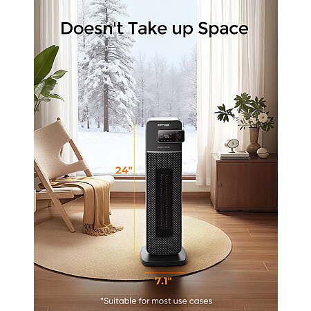Wangyongjun via Walmart.com has NFTIGB 24" Tower Heater, 1500W PTC Ceramic Electric Space Heater with Digital Thermostat, Remote, 70° Oscillation, ECO Mode and Safety Tip-Over Protection, Gray on sale for $40. Free shipping.