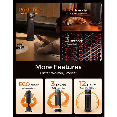 - Smart Energy Savings: The adjustable digital thermostat and ECO mode automatically regulate heat output to maintain your ideal temperature, reducing energy use and costs.