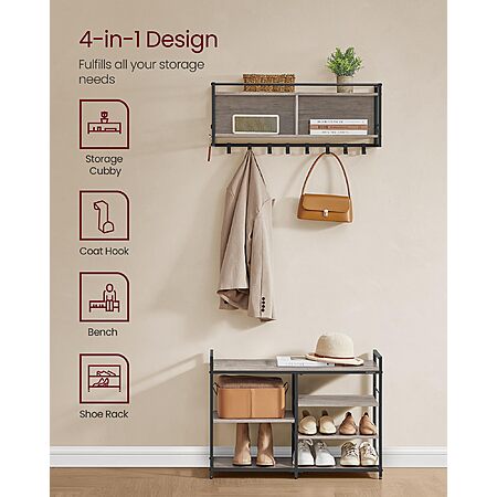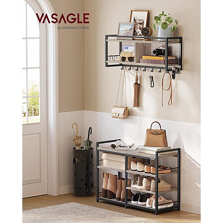 Amazon.com has VASAGLE Hall Tree with Shoe Bench, Coat Rack Shoe Bench Set, Entryway Furniture, Multifunctional, 12 Metal Hooks, 4-Tier Shoe Rack, for Entryway, Bedroom, Heather Greige ULSB107K02 on sale for $45.99. FREE delivery.