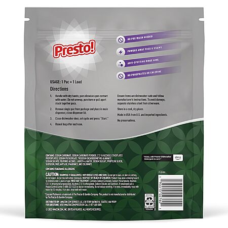 Amazon Brand - Presto! Triple Action Dishwasher Pacs, Fresh Or Lemon Scent, 90 Count~$9.86 With S&S @ Amazon