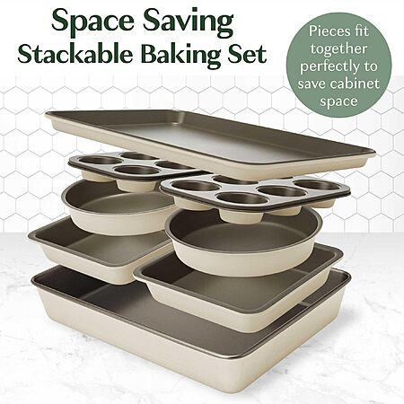 Amazon [amazon.com] has 8-Piece Goodful All-In-One Nonstick Stackable Bakeware Set (Linen) for $28.98. Shipping is free w/ Prime or on $35+.