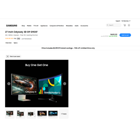 EPP/EDU Samsung g90xf 27" 3d monitor $600 includes free 24" s36gd monitor