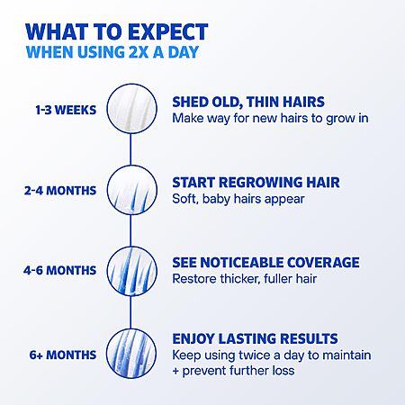 - Easy to use: Apply 1 milliliter of Rogaine Extra Strength 5% Minoxidil for men directly to the scalp twice daily; massage gently and continue use for at least 16 weeks to support optimal hair regrowth and increased hair count