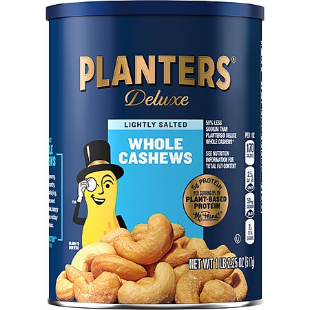 PLANTERS Deluxe Lightly Salted Cashews, Party Snacks, Plant-Based Protein, Quick Snack for Adults, Flavored with Sea Salt, Kosher, 1lb 2.25oz~$8.54 With S&S @ Amazon