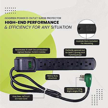 Model: Go Green Power GG-16103MSBK Surge Protector, 2.5 FT, Black