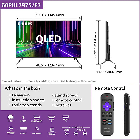 Philips 60" Class 7900 Series 4K QLED Ultra HD Roku Smart TV $249.91 FS with Plus