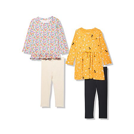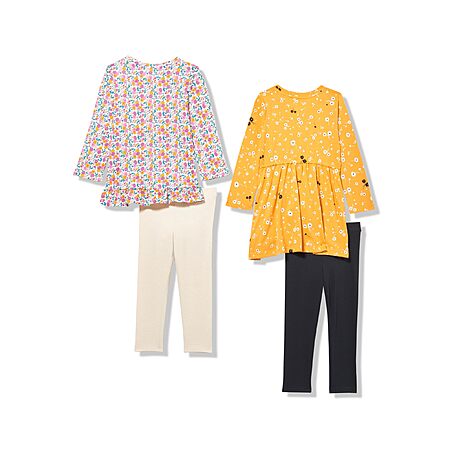 Amazon Essentials Girls' Long-Sleeve Outfit Set, Pack of 4, Gold/Ditsy Floral, XX-Large $10.02