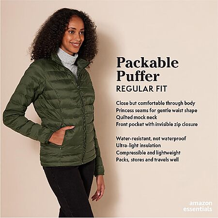 $13.96 M Amazon Essentials Women's Packable Puffer Jacket (size M only)