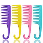 4 Pcs Wide Teeth Combs Shower, Detangler Comb with Hook, Hair Wide-Tooth Wet and Dry Comb for Women Everyday Use and Beauty Salon