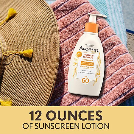 Aveeno Protect + Hydrate Sunscreen Moisturizing Lotion Broad Spectrum SPF60, 12 Fl Oz - $18.07