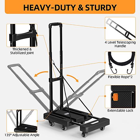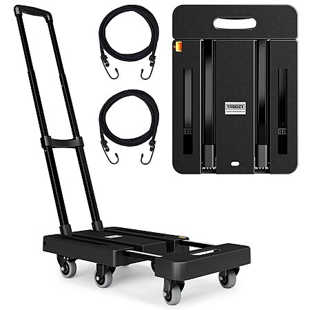 Folding Hand Trucks, Heavy Duty Dolly Cart with 6 Wheels & 2 Elastic Ropes, Foldable, Hold Up to 500 LB, Easy to Store, Black $28.04