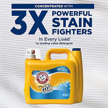 ARM & HAMMER Plus OxiClean Stain Fighters Liquid Laundry Detergent, Fresh Scent, 166.5 fl oz, 128 Loads plus one other variety$9.78 OR LESS SHIPPED Clip Q/S&S YMMV ON Q