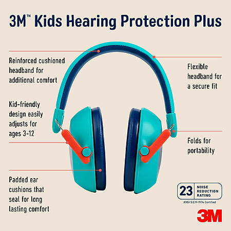 3M Kids Hearing Protection PLUS Earmuffs (23dB, Teal) $13.27 + Free S&H w/ Walmart+ or on $35+