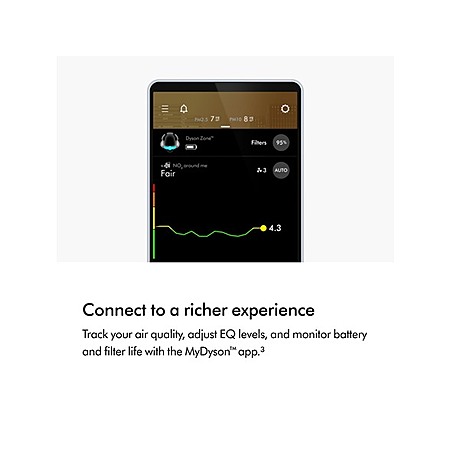• MyDyson app allows tracking air quality, adjusting EQ, and monitoring battery/filter life.