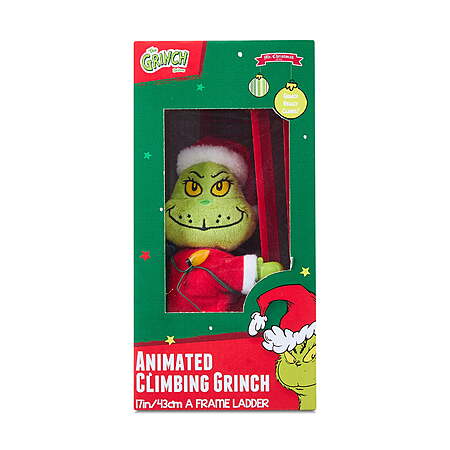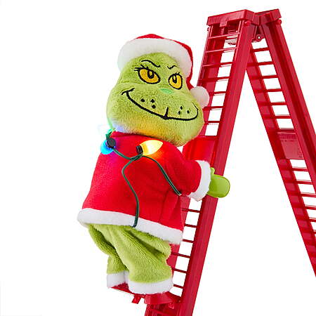 Features a 6.5-inch Grinch figure that actively climbs a ladder, adding dynamic movement to holiday decor.