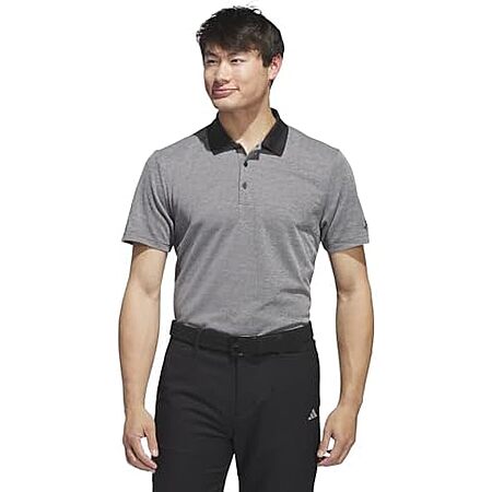 $9.85*: adidas Men's Performance Heathered Polo Shirt (Large Only, Black) at Amazon